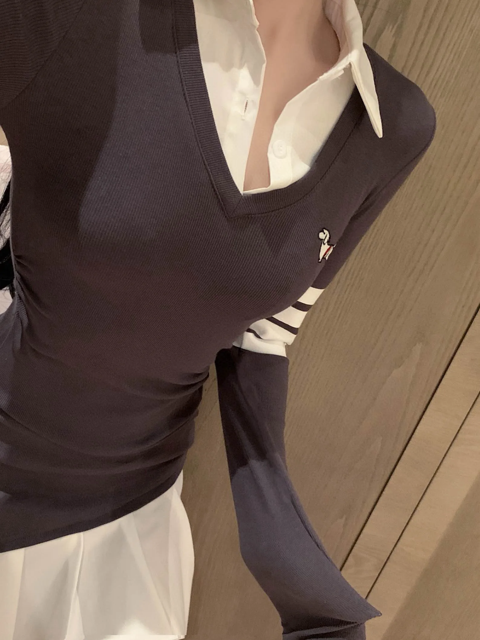 Thom Browne TB Puppy – Tailliertes Hemdkleid mit Vier-Streifen-Stickerei