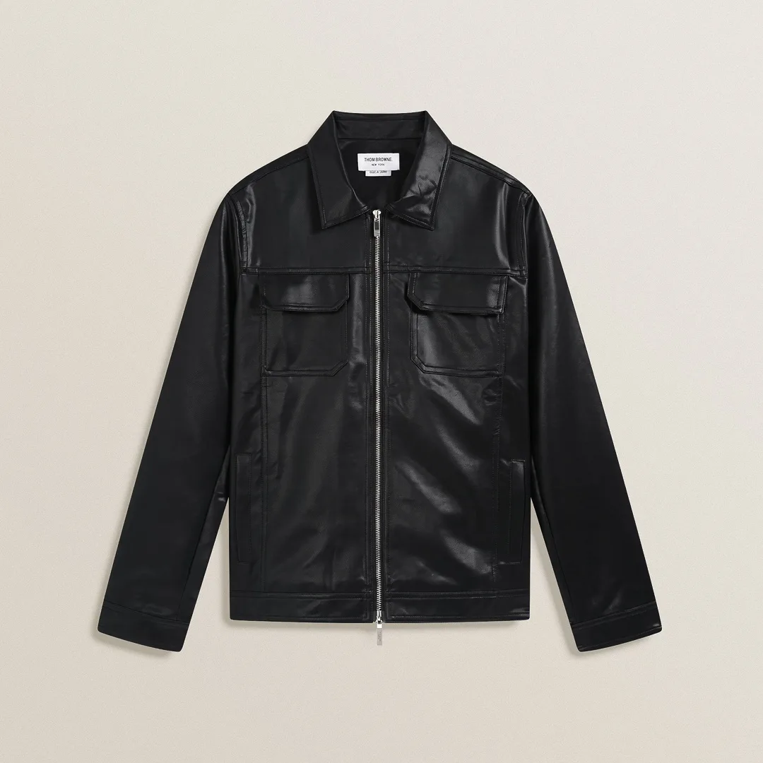 Premium Thom Browne Jacken Schwarz Leder Klassischer Stil