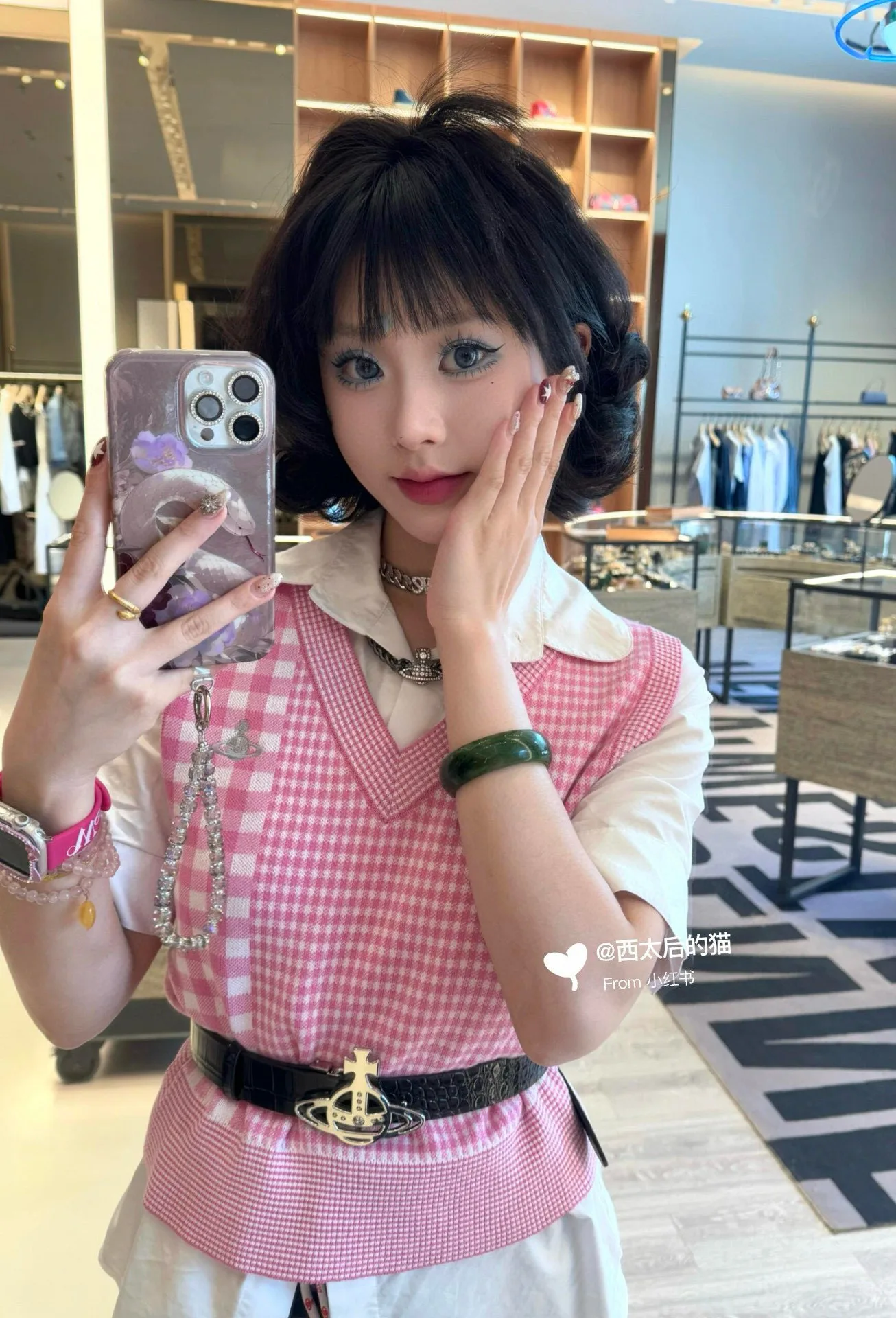 Vivienne Westwood Queen Saturn – Karierte Strickweste mit V-Ausschnitt und Stickerei