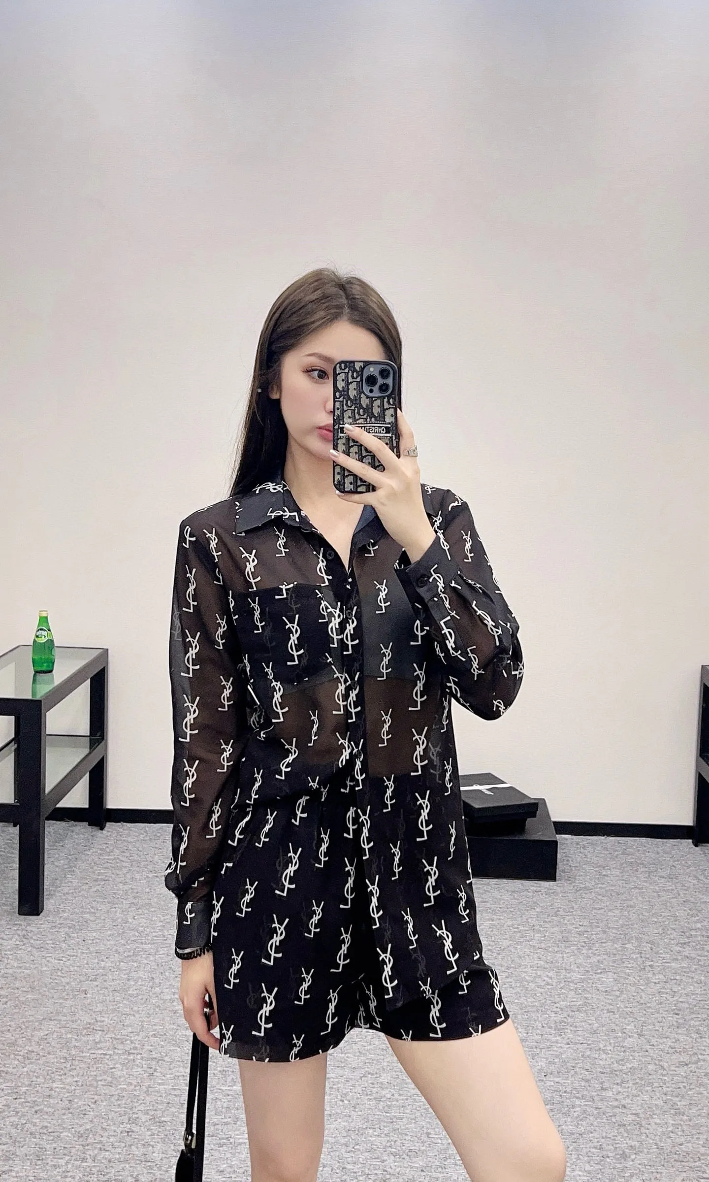 YSL/Yves Saint Laurent [Set aus Jacquard-Hemd und Shorts mit Allover-Print]