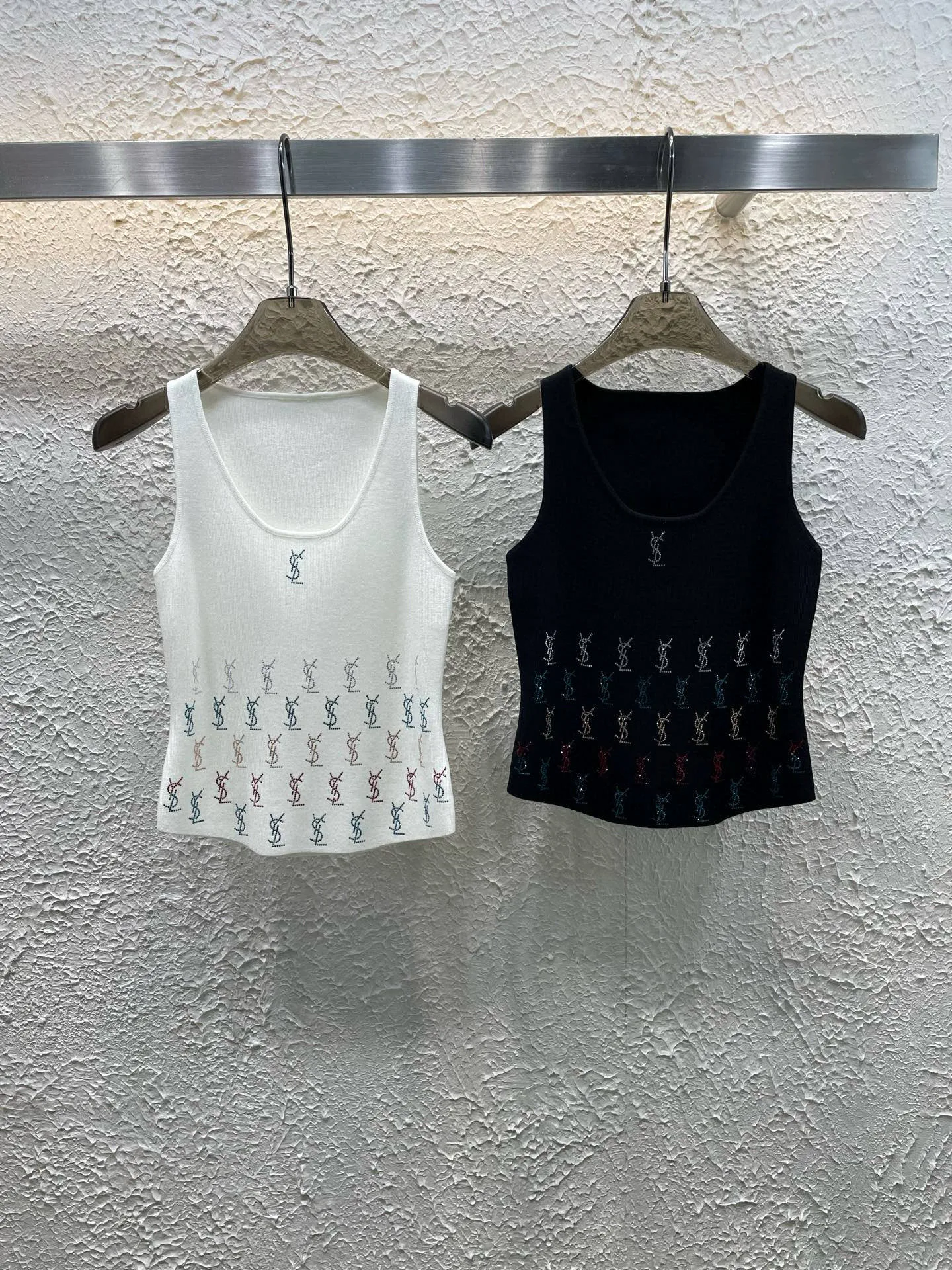 Yves Saint Laurent Strickweste mit Logo und Strassbesatz